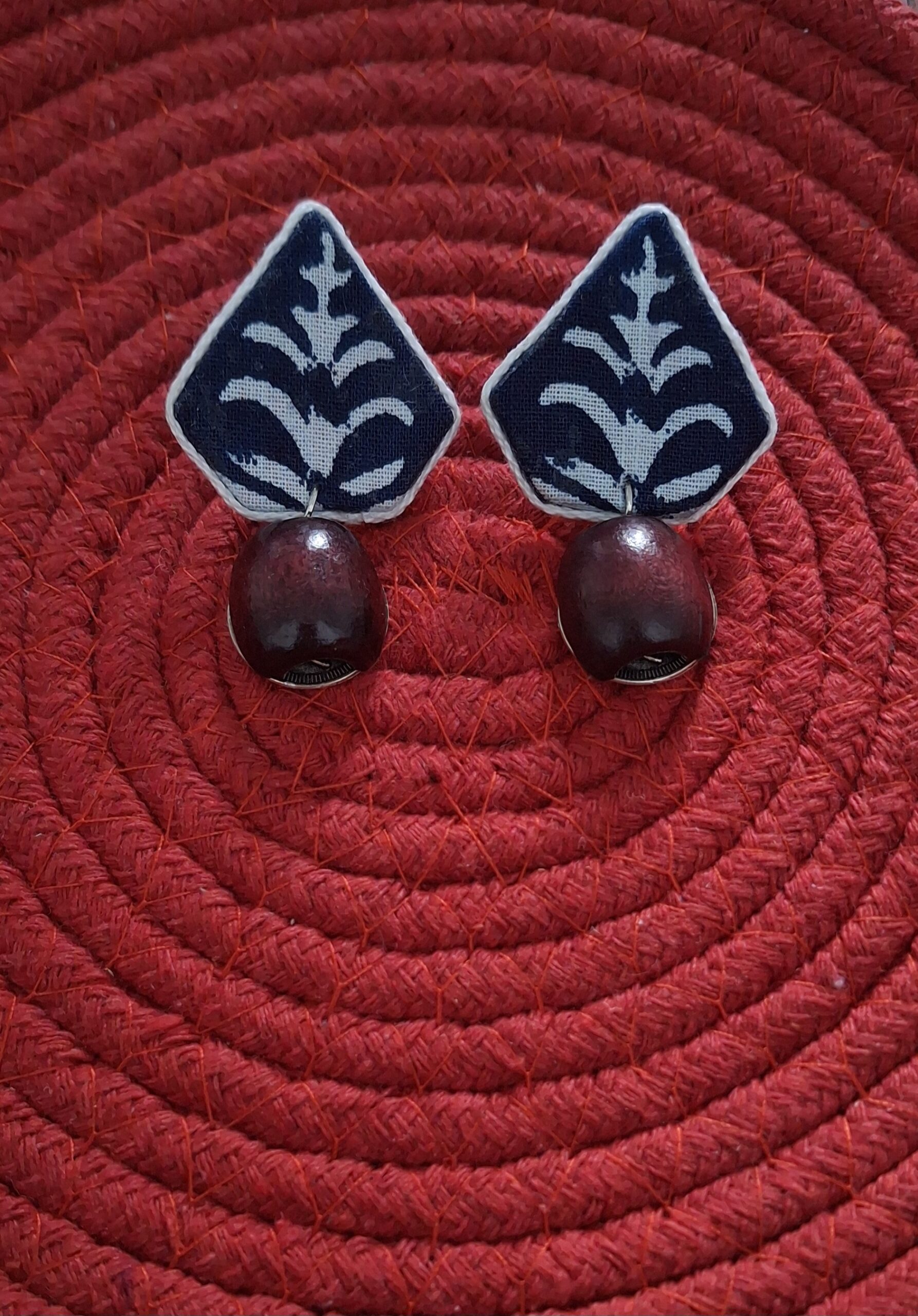 Be the first to review “Handcrafted Indigo Fabric Earrings with Wooden Jhumka Drop”